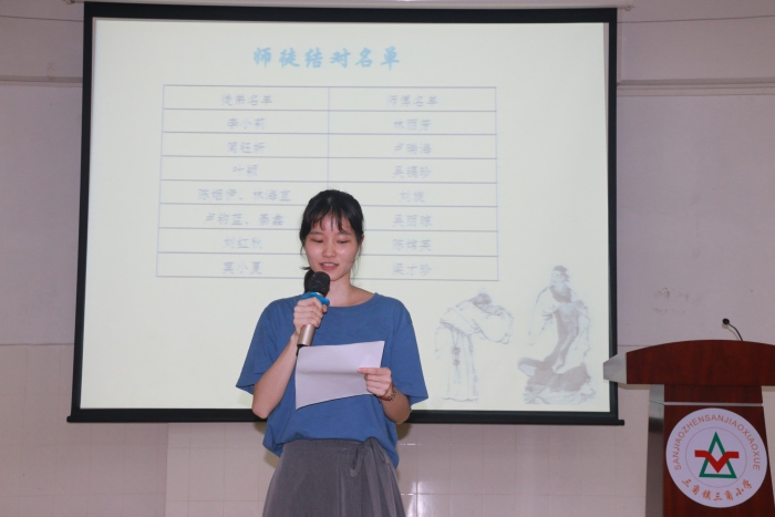 随后,陈主任宣读了本学年的7对师徒结对名单。