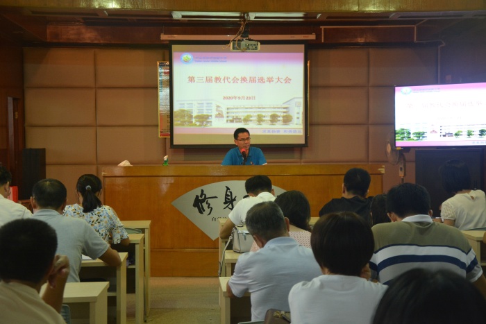9月23日下午,沙栏中学第三届教师代表换届选举会议在该校“和美楼”三楼会议室召开,会议由范立宇副书记主持。