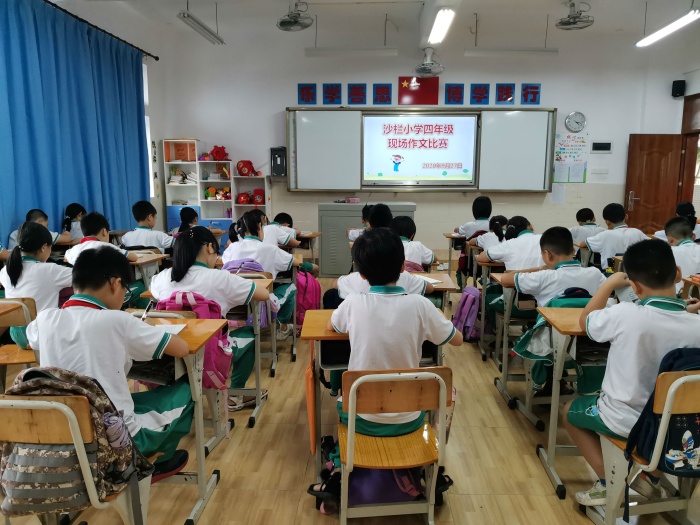 为进一步贯彻落实小学语文课程标准,建设书香校园,营造一个良好的校园文化氛围,全面提高学生的语文综合素养,激发全体学生学习语文的兴趣,学生的习作兴趣与能力,为同学们提供学习习作的榜样,也为了老师了解学生的习作水平,调整作文教学与阅读教学的方法与方向,切实提高教学质量,9月27日下午,沙栏小学举办了2020年度小学四年级学生作文比赛。