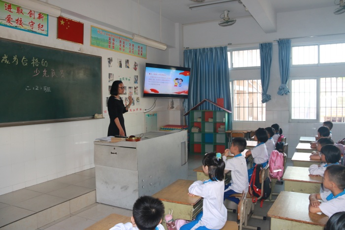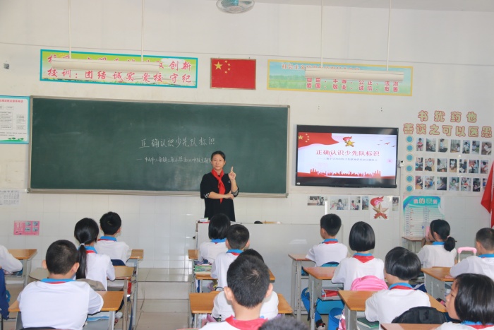 面对一、二年级的学生,各中队辅导员围绕着如何“成为一名合格的少先队员”的问题展开队会。当中队辅导员们讲到少先队员的“六知”、“六会”、“一做”时,同学们都聚精会神地听着。从学习中,他们知道了少先队队名、少先队创立者和领导者、少先队队旗的含义、少先队的标志、少先队队徽的含义、少先队的作风,努力学会佩戴红领巾、敬队礼、唱队歌、呼号、背入队誓词、写入队申请,入队前的要求是为人民做一件好事。三至六年级的同学们已是一名光荣的少先队员。各中队辅导员教导少先队员们正确认识少先队标志,倡导每位少先队员刻苦学习知识,坚定理想信念,磨练坚强意志,锻炼强健体魄,为实现中华民族伟大复兴的中国梦时刻准备着。