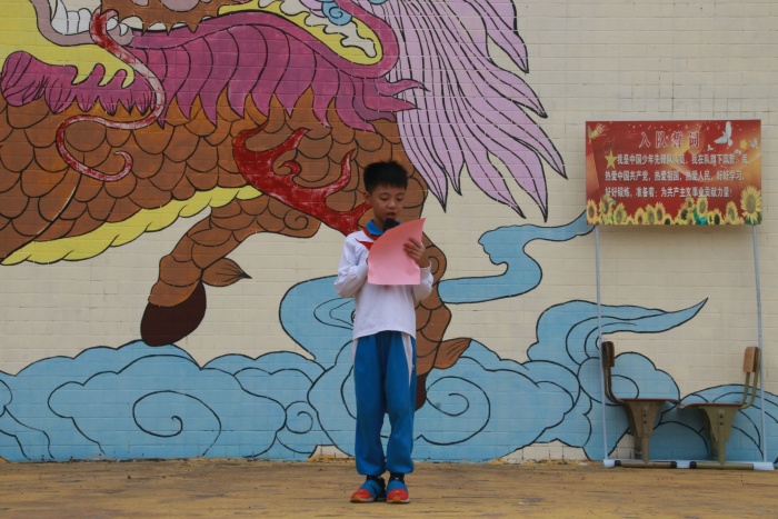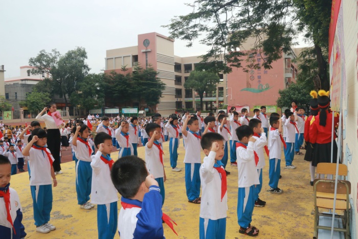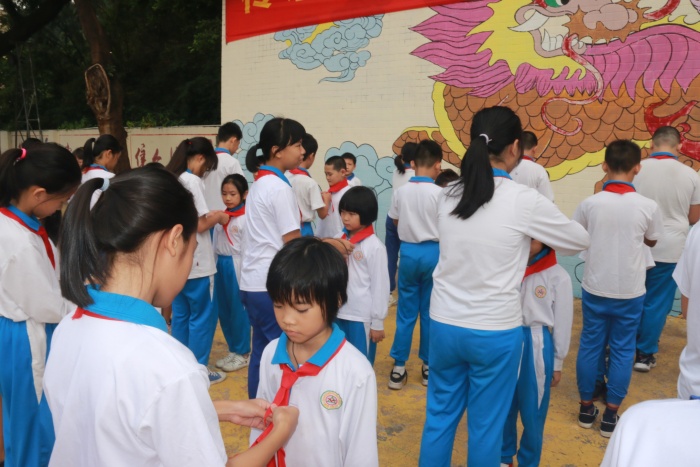 最后,廖乐诗老师带领全体队员呼号:“准备着,为共产主义事业而奋斗!”队员们齐声回答:“时刻准备着!”入队仪式在喜悦热烈的气氛中圆满结束。