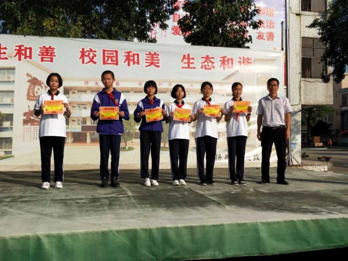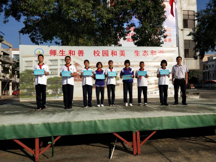 10月12日,沙栏中学在升旗仪式之后进行了“沙栏中学文明班级”、“每月文明之星”、“迎中秋,庆国庆的爱心市场义卖活动——特色商铺”的颁奖。