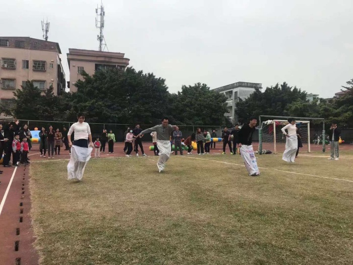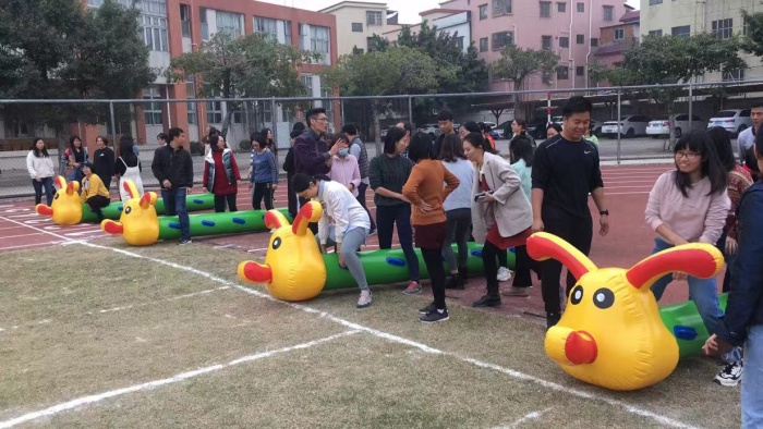 此次趣味运动会在内容和形式上进行了创新,突出了项目的趣味性、娱乐性和观赏性,在工会委员的精心策划下共设立“夹球奔跑” 、“袋鼠奔奔跳” 、“跳兔兔虫”、“众星捧月”四个项目的角逐。在运动场上,老师们都全力投入,力争第一。赛场上,加油声不断,场上充满老师们的欢声笑语,每个人的脸上都洋溢着快乐的微笑。