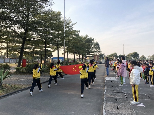 迎着初晨的朝阳,护旗手护送鲜艳的五星红旗,昂首挺胸向旗台走来,高平小学全校师生的目光凝聚在国旗上,唱着国歌,注视五星红旗缓缓升起。紧接着,德育处黄洁玉主任在国旗下进行以“疫情防控与冬季传染病的防护”为主题的演讲,提醒大家虽然在疫情防控方面取得了重大成功,但绝不能掉以轻心。