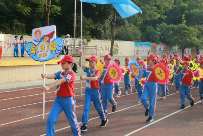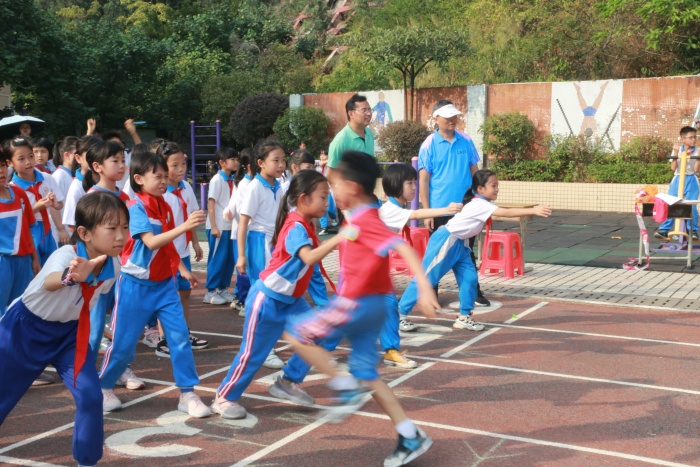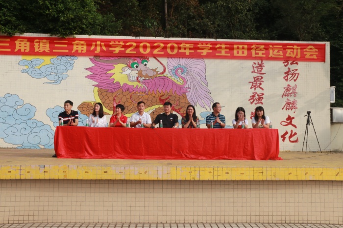 待所有班级入场完毕后,举行了庄重严肃的升旗仪式。随后,三角镇教育和体育事务中心段子元主任发表了讲话,段主任对三角小学本次田径运动会予以了肯定及期待,他预祝同学们在活动中取得好成绩,同时不忘强调同学们平时也要注意增强体育锻炼,以更好的姿态迎接体育素质抽检。紧接着,三角小学陈见洪校长向全校师生做运动会开幕致辞,之后是裁判员和运动员代表宣誓。最后,陈校长宣布三角小学2020年学校田径运动会正式开始。