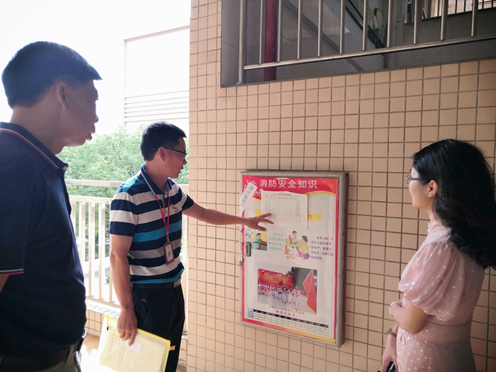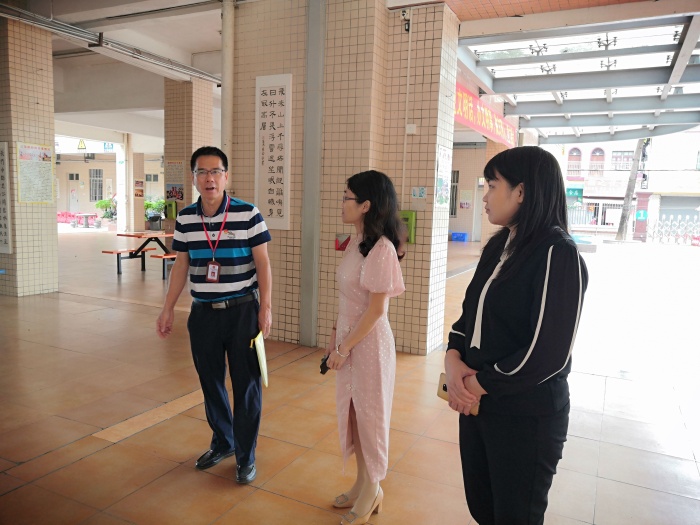 梁炳华督学先后视察了入校测温点,防疫物资储备室,教师办公室,学校教室、功能室、操场和后山,以及校园安全防范设施等等,详细询问了学校近期各项工作的开展情况,以及存在的现实困难与问题。过程中,何应文主任对防疫物资储备情况以及消防安全设施建设作了细致讲解;陈宝莹主任将当前学校的教育教学情况逐一反馈;王辉副校长就学校如何贯彻落实国家教育法律法规和三角镇教体文旅局重点工作、课程开设、特色建设等方面进行了简单的工作汇报。