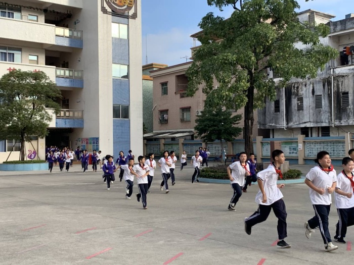 该校坚持每周开展应急消防演练。急促的警报声打破了校园的宁静,由于一直重视校园安全突发情况处置的演练与培训,师生们面对突如其来的火灾警报声都表现得镇定自若,有条不紊。各个应急疏散演练小组迅速到位,各司其职,各楼层、楼道指挥的老师迅速到位,在每个楼梯口指引学生撤离现场。上课老师迅速反应,提醒全体学生有序、快速地从距离最近的楼梯撤离,同学们已有过多次演练经验,反应灵敏,纷纷按照指定的顺序和路线撤离至运动场,用时仅一分多钟。