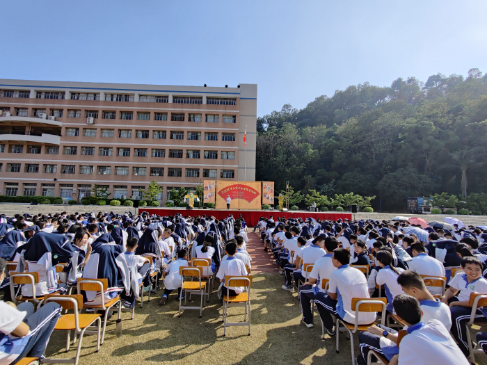 为了弘扬中华传统文化,让学生了解粤剧这种艺术形式, 11月26日,三角中学在学校运动场举行戏曲进校园活动。本次活动由中共中山市委宣传部、中山市教育体育局、中山市文化广电旅游局主办,广东香山粤剧团承办演出,初一年级全体师生参加了活动。