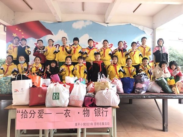 为倡导公益环保理念,实现资源再利用,同时,结合中山市对口支援工作,以捐赠旧物帮助贫困区儿童添衣添物的志愿服务为载体,引领广大小学生做力所能及的环保行动,高平小学于2020年12月30日至2021年1月4日开展“拾分爱——衣·物银行”活动。