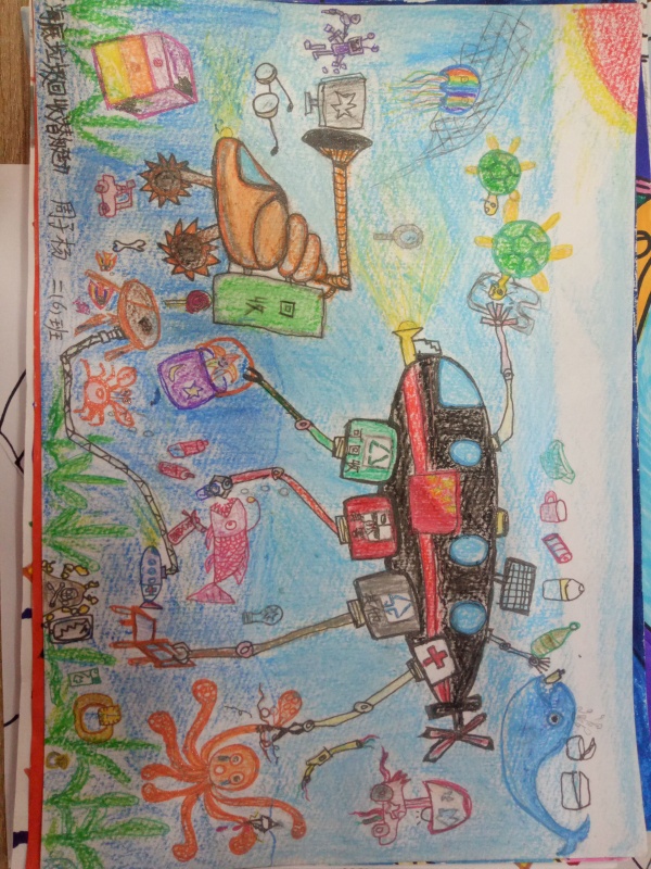 本次活动的主要参赛学生是三、四年级,围绕“科技创新、节能环保”,学生展开了丰富的想象,活动中,同学们通过对未来科学发展的畅想和展望,用手中的画笔描绘着科学的画卷,利用画面设计、色彩处理、绘画技巧等绘画形式表现出未来人类生产、生活情景,熏陶了学生科学思想、培养了学生的想象力,提高了学生绘画水平。本次活动共收集作品61幅,在上交作品中,周子杨同学的《海底垃圾回收潜艇》、刘晓玲同学的《环保车》等11同学的作品贴合主题,被评为一等奖作品。杨筱羿、何雨涵等13同学的作品获得二等奖,谢雅琳、李楠曦等37学生作品获得三等奖。