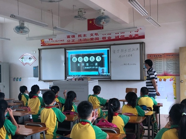 为上好思政课,当好引路人,高平小学莫文杰校长以战“疫”作教材,以思政为主题,给返校学子讲授了以“感动与思考”为题的校长思政课。莫校长启发学生要以抗疫“逆行先锋”为榜样,常怀敬仰与感恩之心。