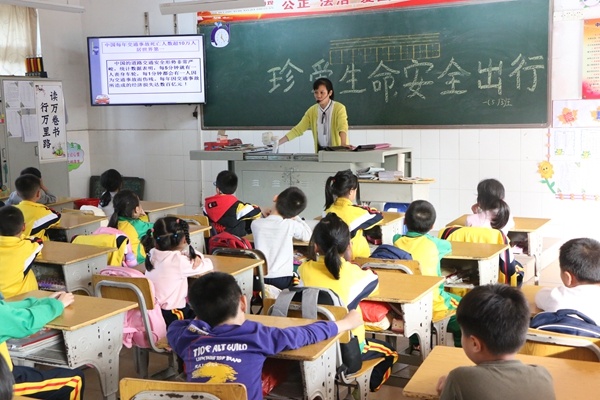 在班会课上,各班主任首先播放安全教育平台《2019年“全国交通安全日”教育专题》学校版视频。通过观看视频,学生对行走安全、骑车安全、乘车安全等方面的知识有了清晰的认识。接着,班主任对课件进行讲授,以直观的图片展示,通过一个个活生生的例子、一桩桩的真实事例,使每个学生都感受到交通安全的重要性。这让学生懂得了过马路时一定要走人行横道线、要遵守交通信号灯、行人靠右走、不能在马路上玩耍等。学生都听得十分认真,并表示会牢记在心。最后,各班主任还从交通安全常识方面对学生进行较为系统的安全教育和班会总结,让全体学生都树立起安全防范意识。