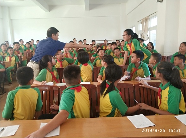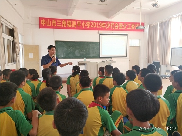 根据《中山市教育和体育局关于上好2019年秋季学期中小学党组织书记、校长第一堂思想政治理论课的通知》的精神要求,9月25日下午,三角镇高平小学莫文杰校长于庆祝中华人民共和国成立七十周年之际,在学校阶梯室给六年级的学生开讲了主题为“风靡世界的中国制造”的思想政治理论课。
