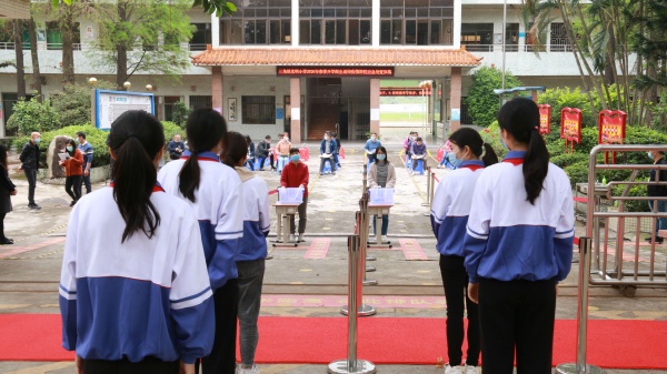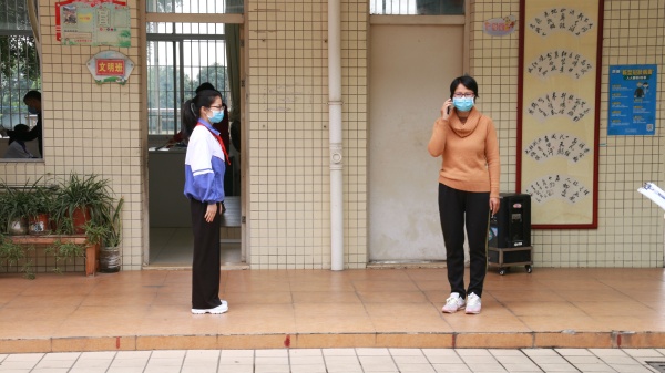 上午10:30演练正式开始,本次演练分七个场景全方位、全流程、全仿真进行模拟:1.师生入校管理演练、乘坐校车的学生上车和入校的演练,“学生”和教师进校,保安和值日教师在岗测温、登记,接着是乘坐校车的学生上车、入校的流程演练;2.课室上课突发异常情况演练,这个环节展示了保洁人员对教室消毒、学生在课室上课时发病、护送到隔离室、对全班学生进行测温排查、安抚余下学生等过程;3.隔离室询问、观察场景的演练,模拟如何处置有疑似病例的学生的全过程。其余的四个场景都在会议室通过视频进行展示:1.教室就餐场景演练;2.各层次负责人汇报情况演练;3.学校疫情防控工作小组准备会场景演练;4.启动应急预警的会议场景演练。演练结束后,镇疾病控制预防中心负责人对演练进行了点评。