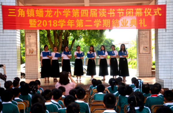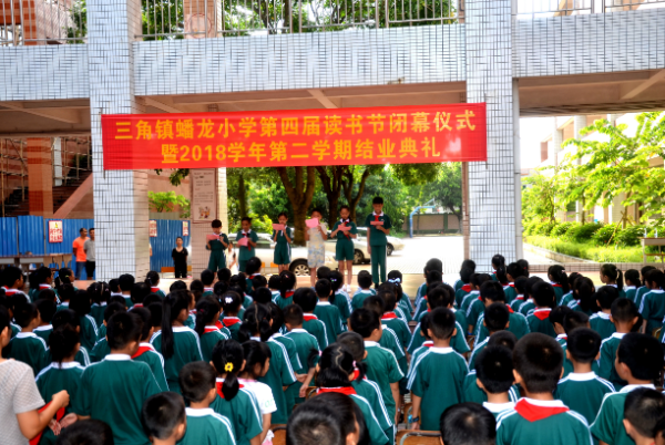 “沃腴沙田育温床……”伴随着校歌《龙之魂》,三角镇蟠龙小学第四届读书节闭幕仪式暨2018学年第二学期结业典礼落下帷幕。