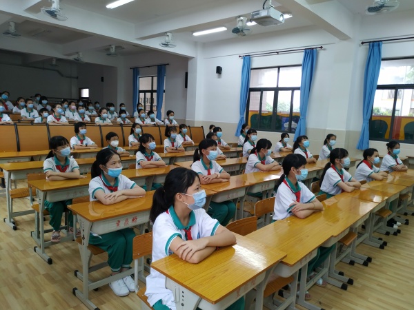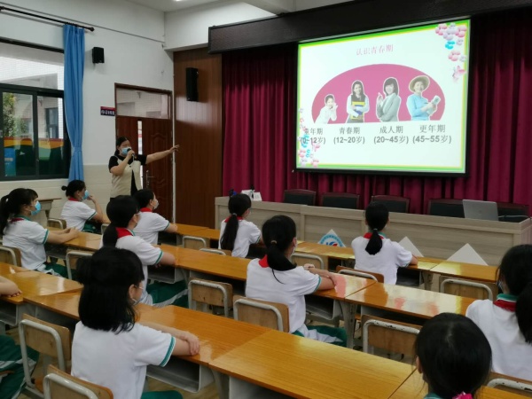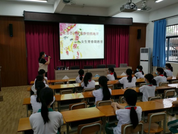 该讲座由大队辅导员杜老师主讲,五年级女生均戴上口罩,相隔一个位置参加了专题教育讲座。讲课过程中,杜老师用幽默生动的语言,深入浅出地告诉同学们什么是青春期,指出青春期女生生理的变化和自我保护措施。接着,杜老师举了很多同学们平时最关心、也是比较敏感的实例,引导她们学会如何保护自己,爱惜自己,做一个阳光快乐的女生。