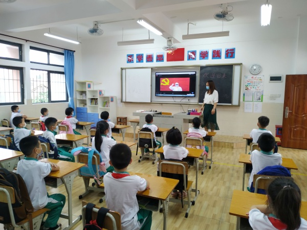 接着,学校根据学生的情况精心准备了开学第一课相关内容,为学生呈现了精彩纷呈的第一课。在课上,各班班主任着重解读了学校防疫工作安排,错峰上下学要求等,并且结合疫情对学生进行生命教育,希望孩子们能珍惜来之不易的校园学习机会,努力学习。在课下,同学们在欢快的唤醒操音乐声中尽情歌唱和舞蹈,无比惬意!