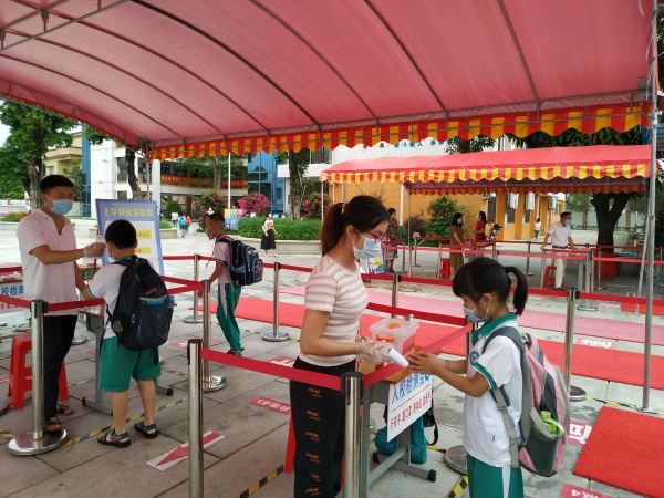 早上7点开始,已有学生开始陆续进入校园。入校学生在值班老师的指挥下,以安全距离列队进行体温检测,体温正常后依次进入校园。 随后,各班班主任派发了由学校提前为返校复学的同学们准备的暖心小礼物——棒棒糖和书签。甜甜的棒棒糖、漂亮的书签让孩子们欢欣跃雀,孩子们纯真的微笑如同灿烂的花朵,可爱极了。