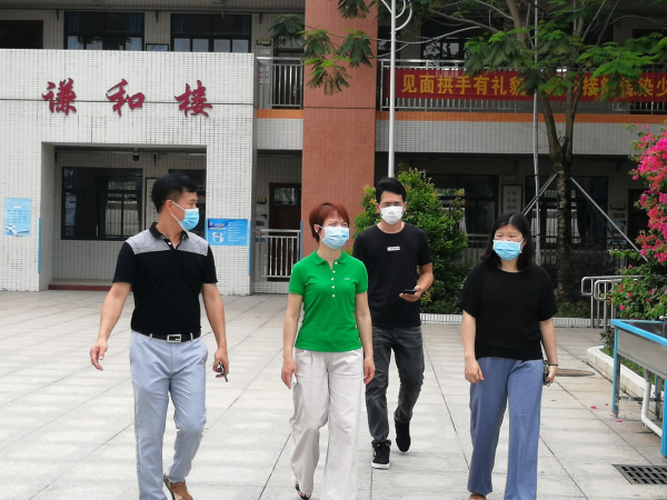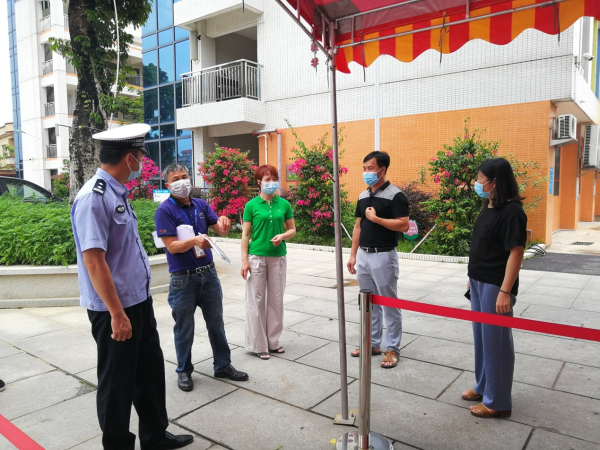 李铭霞委员一行认真听取吴博事校长介绍学校疫情防控相关工作情况及校园安全工作,实地察看了学校的校门防控管制、消防安全、扫黄打非宣传等工作的落实情况,对学校返校复学疫情防控及校园安全工作提出要求。