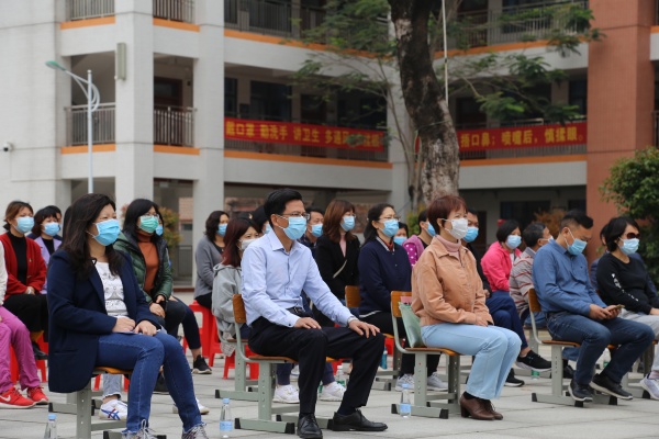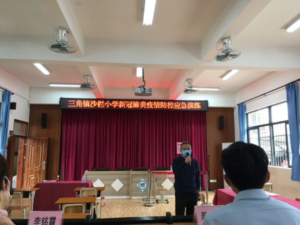 为进一步做好新冠肺炎疫情防控期间学校安全防范工作,提高学校对新冠肺炎防控的应急处理能力,为学生返学提供健康保障,4月25日,沙栏小学举行新冠肺炎疫情防控应急演练,三角镇人大主席周定纯、镇党委委员李铭霞、镇文体教育局局长邵丽燕、镇卫计局局长何松榜、镇疾控中心主任钟向前、镇教育事务指导中心主任胡石生及部份教研员、兄弟学校领导、学校全体教职工等近80人观摩了本次演练。