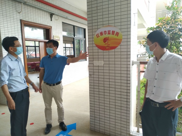 4月21日下午,三角镇人大主席周定纯在镇教育事务指导中心胡石生主任的陪同下到沙栏小学进行调研,详细了解学校的防疫措施落实和开学准备情况。