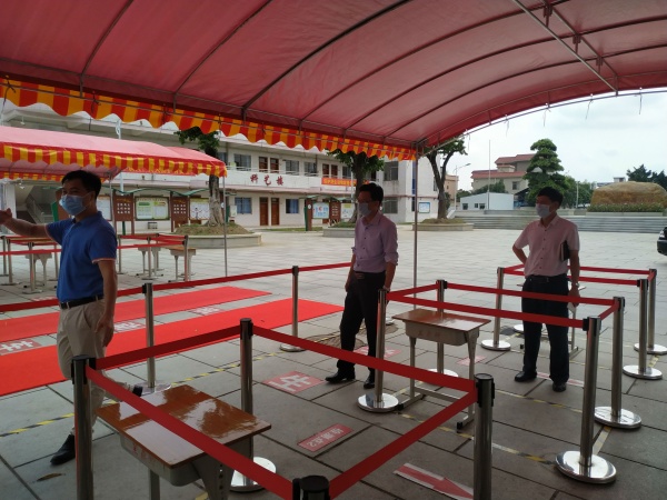 周定纯主席一行实地了解了学校的开学准备工作情况,察看了晨检测温区、临时隔离点、隔离室、课室等场所,认真听取了吴博事校长开学准备工作情况的汇报,并详细询问了学校在开学准备工作中存在的困难。周定纯主席对学校目前的防控工作表示满意。