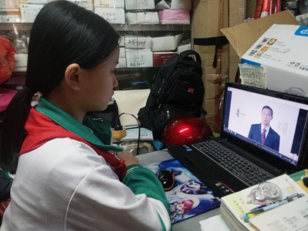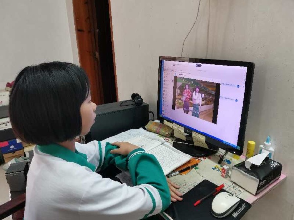 同学们在家中利用手机、电脑等设备观看视频,能做到认真上课、积极参与提问和讨论,并邀请家长一起学习禁毒知识,与家长分享自己的观点和感受。