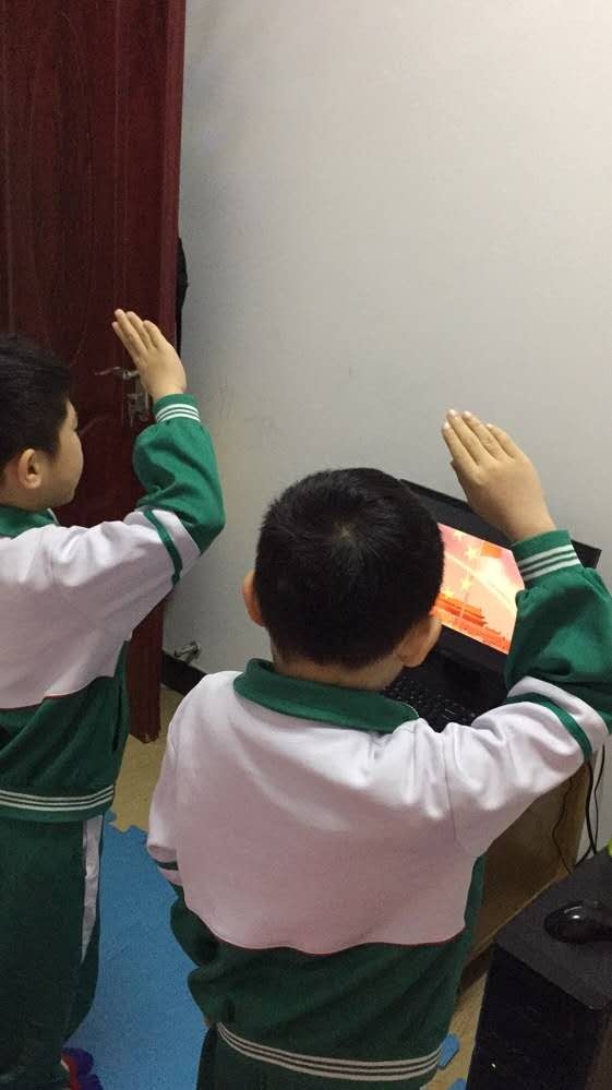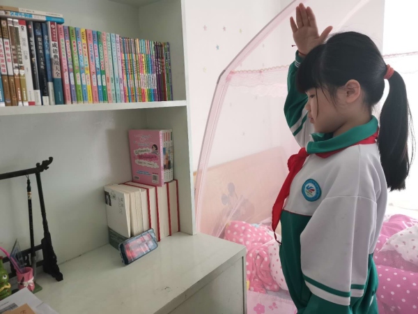 早上8点,沙栏小学全体队员进行“致敬,英雄的你”“云”升旗仪式。“云”升旗仪式结束后进行国旗下讲话。