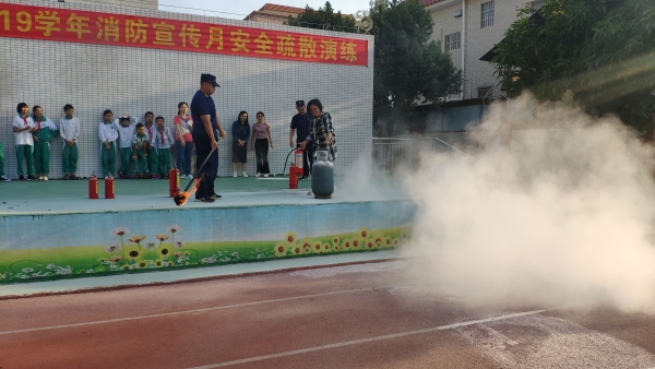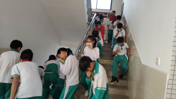 在消防应急疏散演练前,各班班主任按学校制定的演练方案组织学生学习,并强调安全注意事项,预先排好班级队伍,同时也安排了各楼班课室、走朗、楼梯口、楼梯拐弯处足人员,参加演练的工作人员,提前5分钟就位,确保做好安全保护工作。当演练信号发出后,处在楼梯口的教师进行指挥,各班迅速在教室过道上整理好队伍,按照预先排好的顺序疏散,排成两路纵队,并弯腰捂嘴护头有序前进。随后各班主任把所带学生送到安全地带后应立即清点人数,并报告现指挥人员吴校长。消防安全疏散演练结束后,消防大队人员进行了常见火灾灭火实战演练,全体师生懂得了正确使用灭火器的方法,掌握了消防安全的相关知识,提高了抗击火灾突发应急事件的能力。