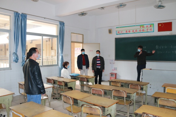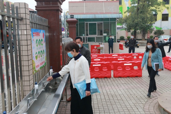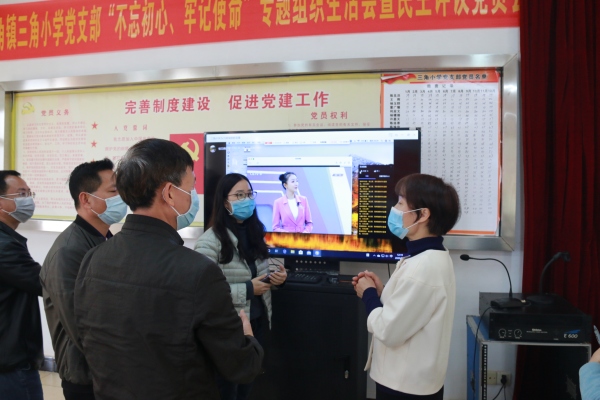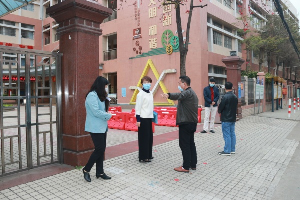 3月6日上午,三角镇党委委员李铭霞在镇文体教育局局长邵丽燕、镇教育事务指导中心主任胡石生的陪同下,到三角小学调研指导疫情防控和线上教育教学工作。