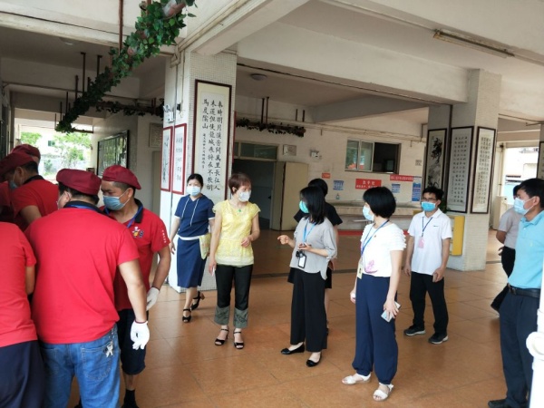 5月7日,三角镇党委委员李铭霞、文体教育局局长邵丽燕等领导到沙栏中学检查第二批学生返校准备工作进程、研讨防疫工作。