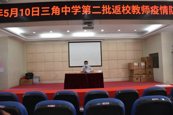 为保证5月11日初一初二师生顺利返校复学,5月10日上午,三角中学在报告厅召开了第二批返校教师防控工作培训会。全体初一初二教师、行政领导参加了培训。
