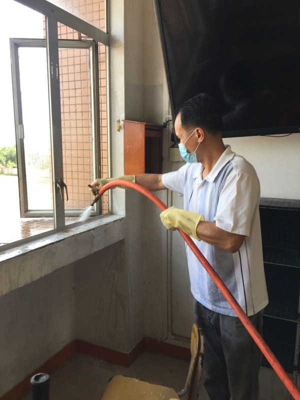 5月4日上午,学校初一、初二年级老师同时行动,彻底打扫年级教学楼。老师们顶着夏日的太阳,牺牲假期休息时间,由家赶到学校,经过简单的动员,迅速投入到紧张、繁重但意义重大的卫生清洁工作中。