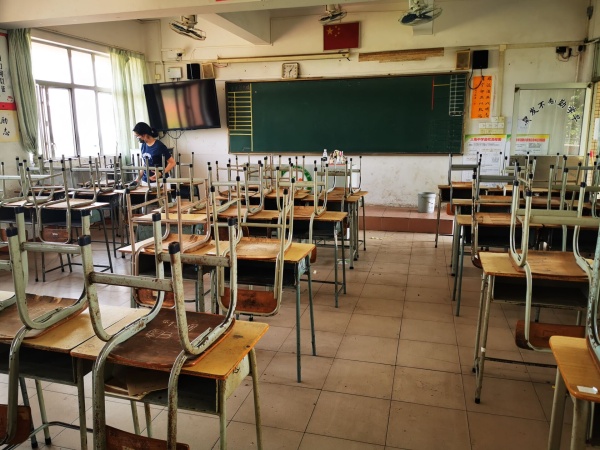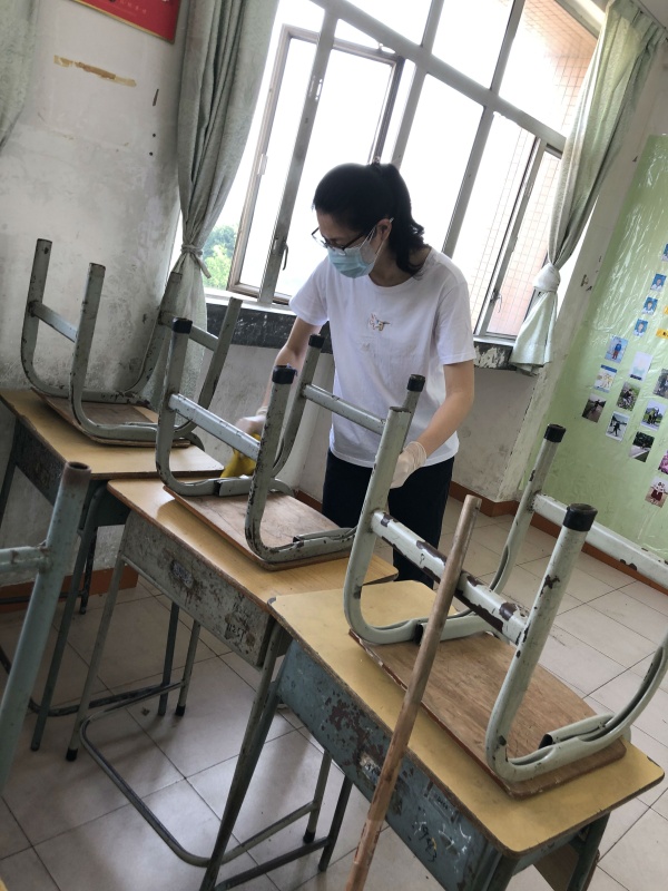 按照疫情防控的要求,教室座位必须单人单桌,间隔距离,教室的内的卫生标准极为苛刻,老师们清洁卫生任务更加繁重了。