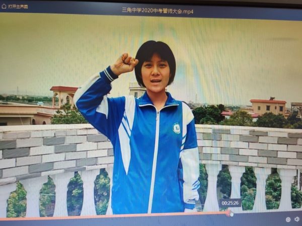 初三级各班也派代表录制宣誓的视频,紧握右拳,铿锵有力地宣誓,表明决战中考的决心。