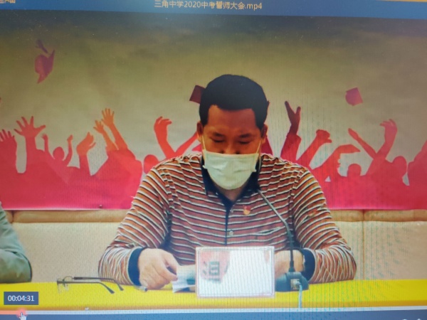 九年磨一剑,六月试锋芒。为迎接即将到来的中考,充分调动初三年级师生冲刺中考的积极性,激发学生们的学习激情,营造浓厚的备战中考的学习氛围。3月22日晚上,三角中学举行了2020年中考冲刺誓师线上视频大会,家长和孩子在家一起收看。活动由何志杨级长主持。