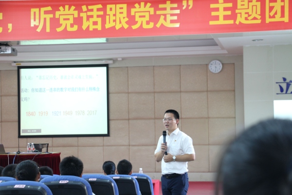 为培育和践行社会主义核心价值观,进一步加强学生思想道德建设工作,弘扬以爱国主义为核心的民族精神和以改革创新为核心的时代精神,引导学生增强民族文化自信和价值观自信。三角中学团委联合上级团委举办一节《厚植爱国情怀,听党话跟党走》团课。中山市实验中学团委书记张旭老师和镇团委杨慧芬书记,周琼珠副书记受邀参加此次活动,该校全体团员、入团积极分子及班级干部约200人聆听此次团课。