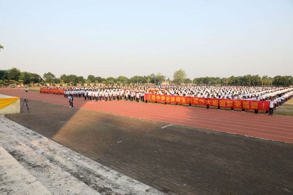 “我爱我的国,我爱我的家。国是我的国,家是我的家……”“祖国万岁!祖国万岁!”嘹亮的歌声,舞动的红旗,深情的祝福响彻美丽三中的每一个角落。2019年9月30日早上八点整,三角中学全校师生精神昂扬,手持红旗,整齐列队,高唱国歌,举行“礼赞新中国,走进新时代”升旗仪式,庆祝新中国成立70华诞,教办胡石生主任也到现场参加此次活动。