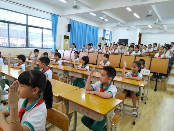 6月18日下午,三角镇沙栏小学隆重举行“迎接少代会 争做好队员”第三届少代会。三角镇沙栏小学校长吴博事、副校长梁雪文、沙栏小学各行政、中队辅导员及一至六年级的少先队员代表共89人参加了本次少代会。