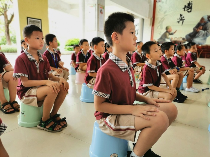 上课铃响后,学生排好队有序走进笃行堂,安静坐下。学习活动开始前,德育处陈文丽主任就给听会学生提出了参加本次学习活动的要求:一要保持安静;二要认真听讲,三是发言必须举手;四是不插话,不起哄。
