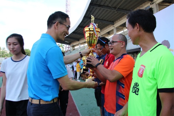当天,尽管烈日炎炎,三乡镇党委委员郑伟强也在百忙中抽空到现场为队员打气,载德小学毛义祥校长与学校部分教师一同到中山市兴中体育馆为功夫足球队呐喊加油,功夫小子们通过努力和汗水赢得的这份殊荣,值得大家为他们说一句“功夫小子,你是最棒的!”