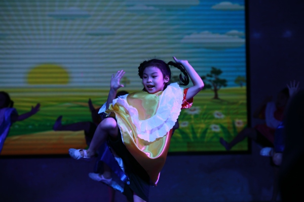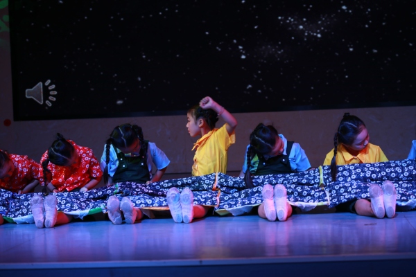 瞧,舞蹈队的表演多精彩!小小舞蹈家通过身姿和表情把山区儿童渴望得到关怀的情绪表演得非常到位!极具感染力!舞蹈队表演活力四射的海草舞一下子就把大家的眼球都吸引去了。