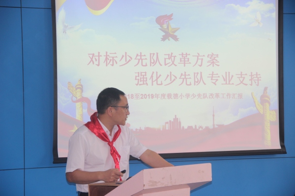 在会议室里,毛义祥校长以《对标少先队改革方案,强化少先队专业支持》为主题,紧扣“巩固组织基础”、“提升队伍素质”、“夯实阵地建设”和“创新活动开展”四个方面介绍了学校一年来的少先队改革工作情况,根据《少先队改革方案》,学校扎实推进改革,促进少先队工作制度化、专业化、系统化。