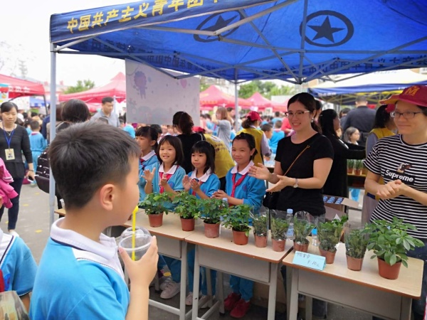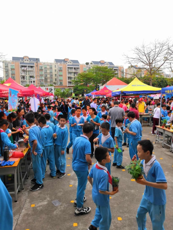 活动准备开始时,每个班级的家长义工都争相奔往活动场地,在各自的阵地上搭建起一个个各具特色的简易店铺。24个爱心义卖摊位各出其招,装点各具特色。其中义卖物品也很有创意,有自制精品、自制DIY手工作品、自制美食、现场演奏乐器、书画作品等。还有创意十足的店名和有夺人眼球的广告板,让人不禁眼花缭乱。每个班级的小售货员们使出浑身解数,格外卖力地推销,为了吸引更多的顾客,有的高举广告牌大声吆喝,有的在摊位上使出浑身解数尽情表演,有的挥舞精心制作的展板惹人注意,有的如同卖货郎一般四处兜售。一元,两元,五元,五十元……虽然已经口干舌燥,但看着越来越多的爱心款,售货员们顾不上休息,尽力用最诱人的语言打动每个顾客。沸沸扬扬的吆喝声此起彼伏,满眼看到的都是一张张灿烂的笑脸,人群中,有可爱的同学们,有热情的家长们,也有可亲可敬的老师们,每个人的眼里都带着浓浓的快乐。