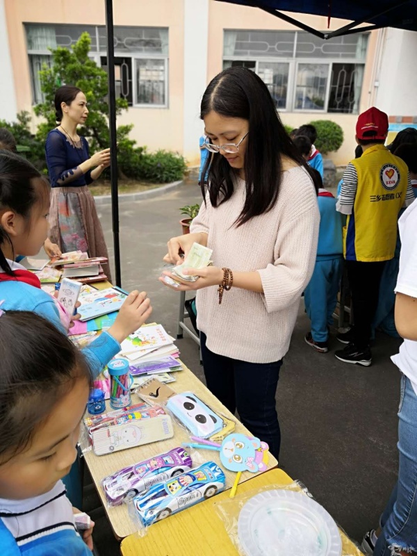 快乐的时候,时间的流逝让人难以察觉,当被宣告义卖活动截止时,同学们格外恋恋不舍。看着桌上未卖完的商品,“我要”“我买了”一句句动人的语言从同学们的口中蹦出,虽然这些剩下的物品,他们并不真正需要,但为了多献一份爱心,也甘之如饴。在整个活动进行到尾声时,各班家长们和孩子们一起清理好场地,还进行了合影留念。