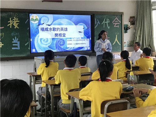 2019年5月8日下午,由中山市尚古传统文化推广中心举办的非物质文化遗产的公益活动项目——“爷爷奶奶一堂课”在三乡镇白石环小学开讲。尚古传统文化推广人小鱼姐姐和大英雄樊根堂爷爷和六(3)中队的队员们进行了面对面交流。
