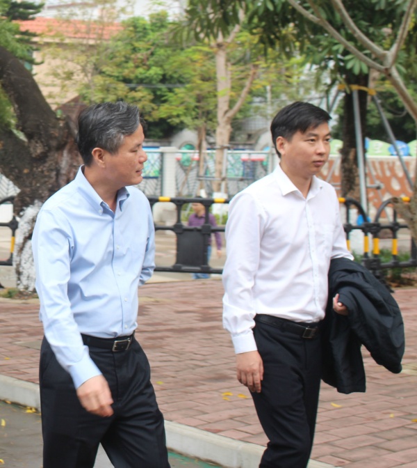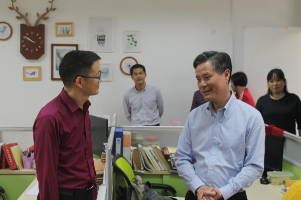黄顺欢书记一行一到学校就立即巡视校园,询问学校学生等候区、科技楼和饭堂等场地的维修情况。