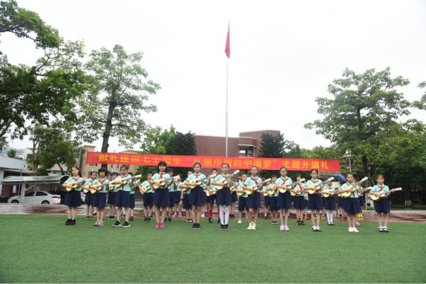下午,尤克里里弹唱《五星红旗迎风飘扬》童趣情真、“我的三乡我来爱”主题队会心思巧、“东南西北”美食汇创意足、“林海”庆六一艺术主题中队会引惊叹、班级亲子游艺会笑声浓、毕业纪念树种植礼传文明、……23个班个个都有不同形式,但23个班个个有着相同的快乐。