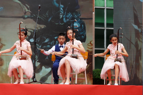 回顾往昔,早在2019年4月28日,36名弓弦乐团的孩子们迈着小脚丫,来到中山市东凤镇安乐小学,就进行了一次安乐小学行。四月的安乐小学校园,到处绿意盎然,处处可见孩子们天真的笑脸。两校的100多名孩子进行了《弓弦情 民族魂》交流演出。森林娃们高超的演绎水准博得掌声阵阵。精彩的演奏彰显了森林娃对民族艺术的传承和弘扬。在交友环节中,森林娃们主动、热情,落落大方,赢得了安乐小学师生的称道。除此之外,在更早之前的2017年,平岚小学艺术游学团也已经名声在外啦!2017年,艺术游学团的广州-东莞-深圳巡回游学产生了广泛的影响。