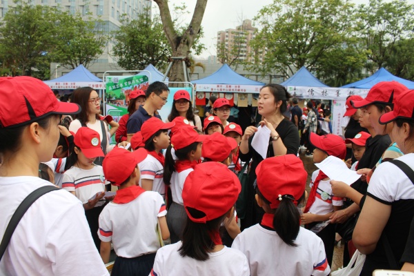 森林小创客的摊位上围观的大小朋友被陈小奔编程机器人和亲手指导接线控制电风扇运转、湿度测量以及灯的开关的体验活动深深吸引,他们的眼神里传递着对科学的好奇与热爱。
